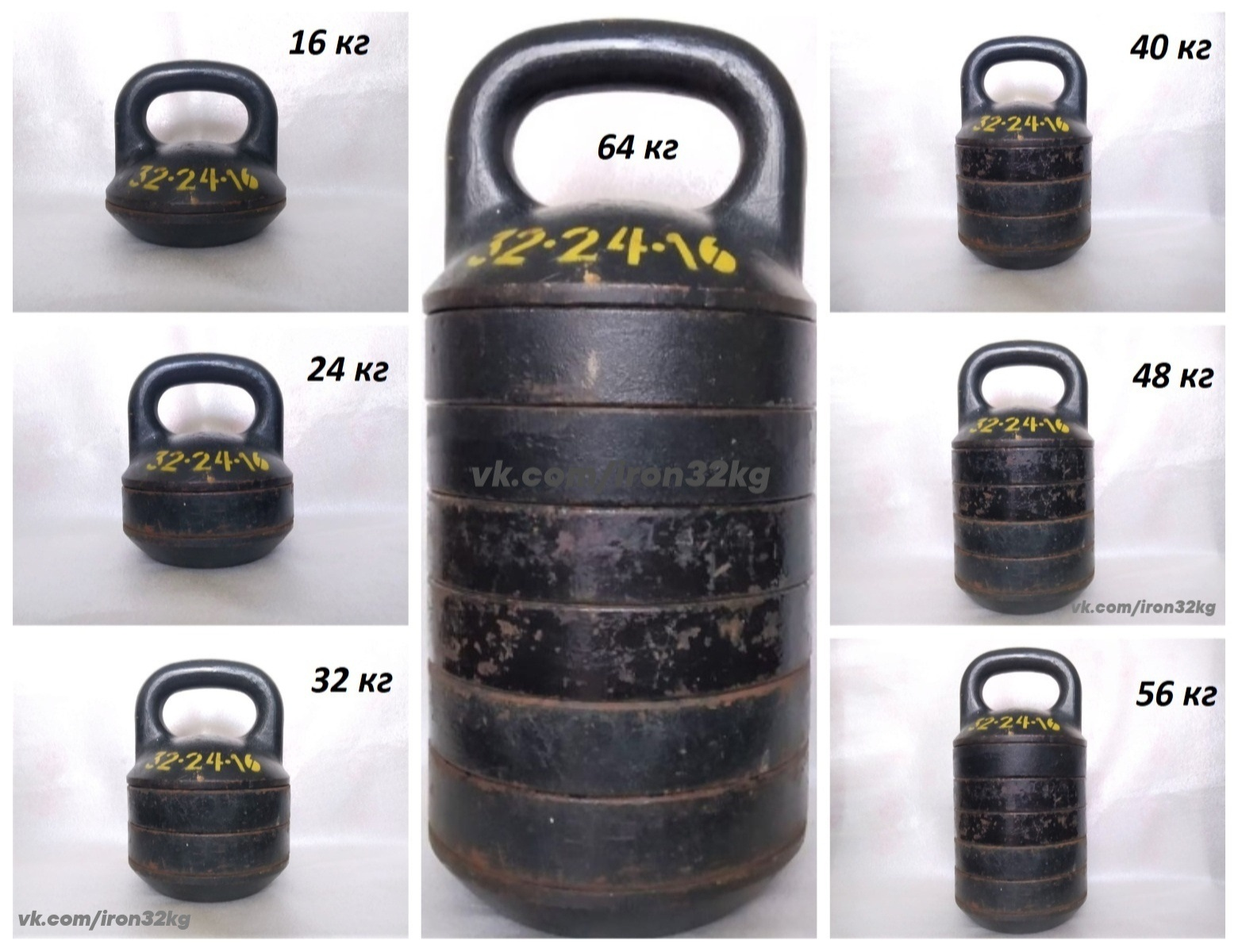 у самого старенькая 16кг гиря сссрских времен, она низкая, ручка П-дужкой как на пике выше, но внутри МАЛО пространства, что влияет на технику и попросту неудобно; поэтому захотел взять себе дефолт 16-20-24 с расчетом на год-полтора и столкнулся с особенностью нашего рынка