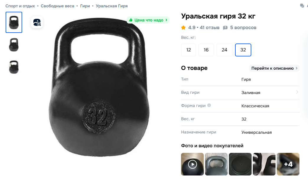 1. покупайте гирю Титан 16 кг с ВБ или Озона. Либо ищите советский чугун на авито.