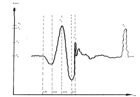Рисунок 7 – Динамограмма развёртывания опорных реакций при толчке гирь от груди