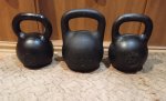 >у бургеров прям четко "компетишен кетлбел" ВСЕХ весов в одинаковых dimensions (наши тренировочные отличаются от дефолтов 16-24-32), т.е. там можно брать гири с шагом 4кг (пример: 16-20-24) и без гемора выстраивать трен. план, ибо прыжок небольшой.