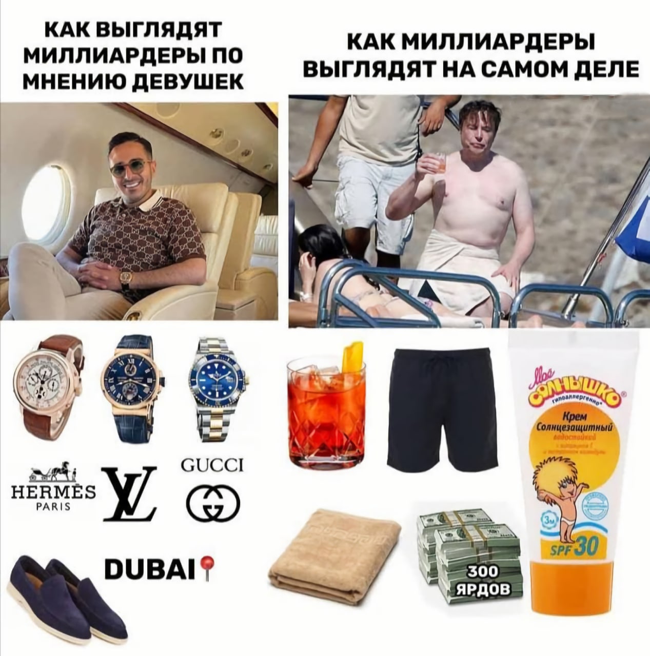 Картинка - чистейшая правда. Неужели тян этого не понимают? Что чел при деньгах будет тратить деньги на то, что нравится и комфортно, а не на побрякушки, единственная цель которых - продемонстрировать статус непонятно кому?