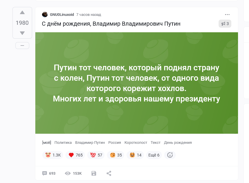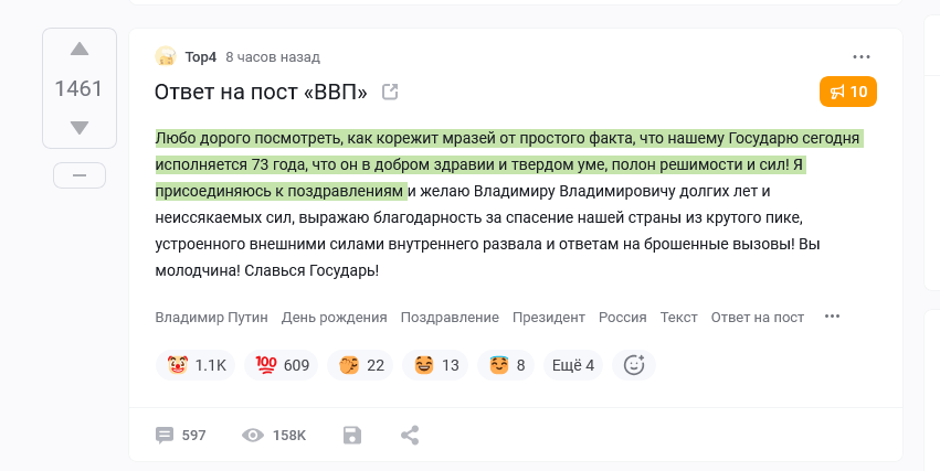 там это на пекабу, каждый второй пост про день рождения ВВП и его поздравления, а так же признания в любви