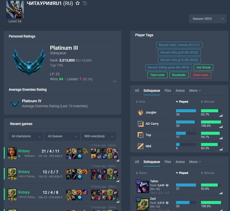 https://www.leagueofgraphs.com/ :: Чек игроков/метарабство