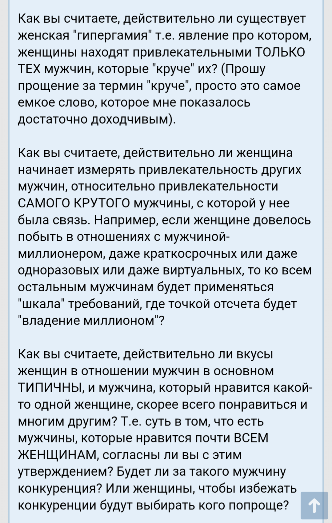 Они и не пиздят по сути, абсолютное большинство просто настолько глупы, что реально так считают. >>10363765 → Она говорит, что прически мальчиков обсуждали в школе и что волосы влияют на внешку, это правда, только вот Славка с 3/10 ебалом за мальчика ими никогда не считался как ни крути и она не способна это понять. Они еще верят, что им внешка не важна, потому что при каких-то особых условиях им может понравится 7/10 кун, это ниже среднего в их восприятии, а значит внишнасть ниважна))0). Ниже для них не мужчины и вообще не люди, в их голове мы нигде не учитываемся, отсюда такие заблуждения. Выходит она эту чушь искренне высрала с верой, что может кому-то помочь