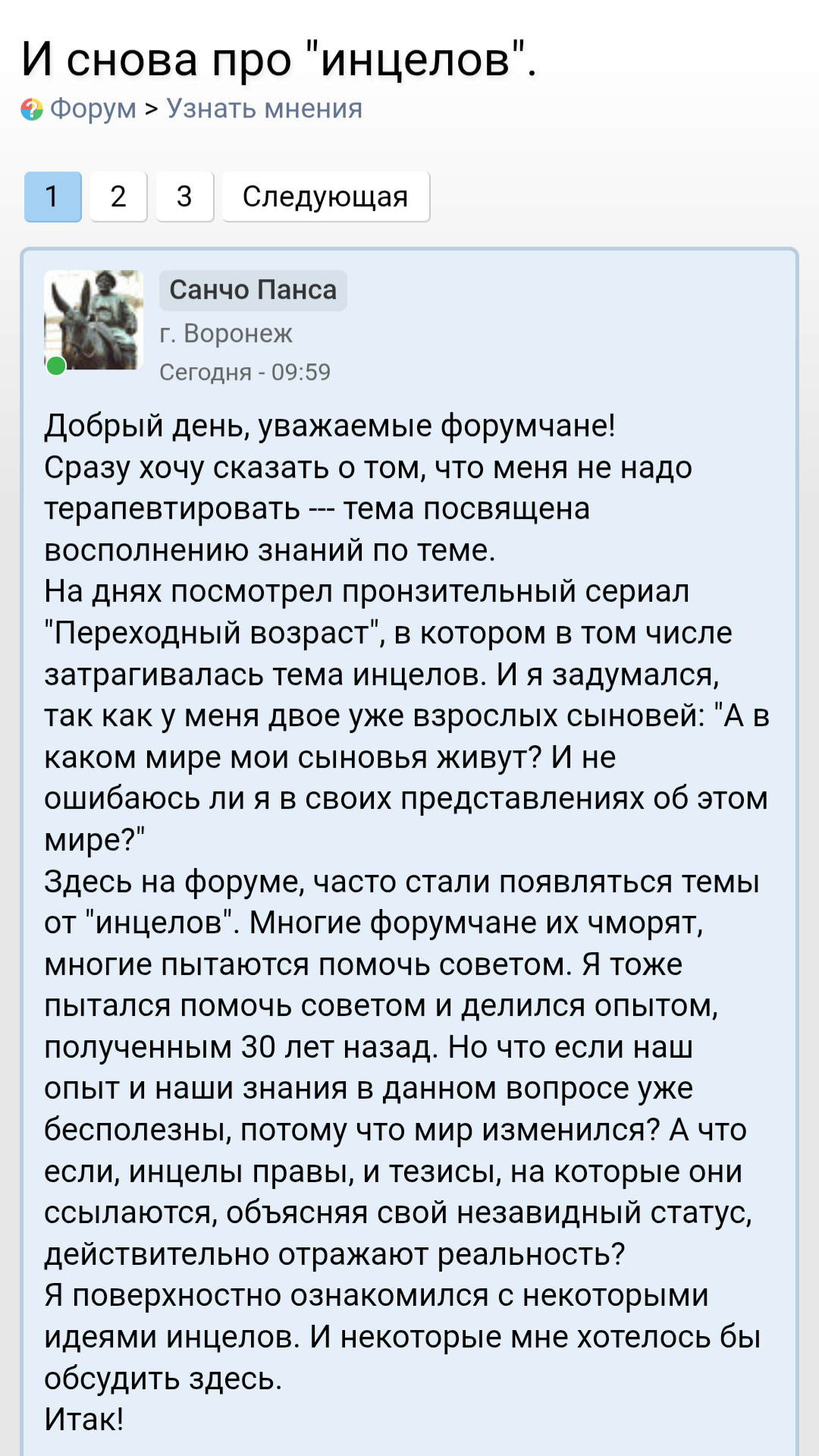 Поэтому я выписался из инцелов, но идти мне некуда больше, приходится гнить здесь