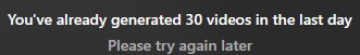 Одновременно на одном аккаунте можно генерировать до 2 видосов. В день не более 30 штук.