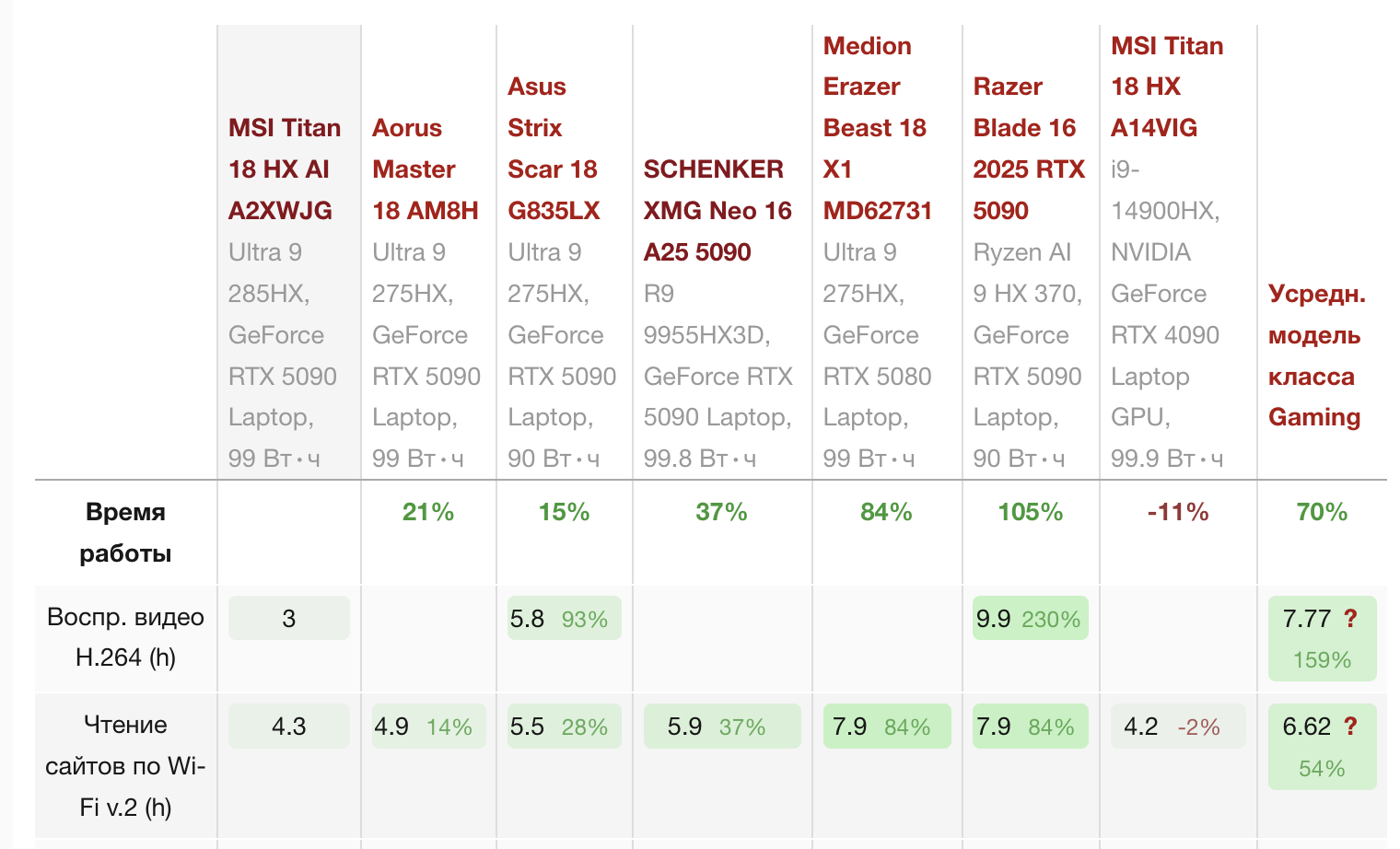 Tier1: Lenovo Legion 9/7/Pro / MSI Raider/Titan / HP Omen (HX) / Razer Blade / Acer Helios / Gigabyte Aero / ASUS Zephyrus/ROG/Flow/Scar / Clevo X / TongFang GM / - Топ-сегмент для любых задач до RTX5090, опциями до 4K 100%AdobeRGB 240Гц, батареями до 100Вт/ч, 1.6-2.5+кг веса и максимально возможным охлаждением.