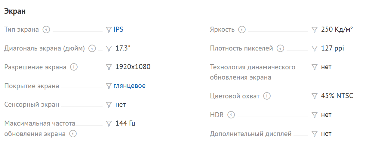 Касательно матриц - в большую часть ноутбуков ценой до 80-100к продолжают ставить матрицы с 6-битной глубиной цвета(впридачу 40-60%sRGB/45%NTSC), это 262 тысячи цветов с розовым цветом вместо красного(бледно-фиолетовым вместо розового и т.д.), максимальной яркостью 200-250 нит, 30-40мс задержкой отклика, хуевость матрицы часто компенсируют завышенным контрастом, особо заметен glow effect. 120-144Гц при этом, на медленной матрице, будут только усиливать шлейфы в 2-2.5 раза.