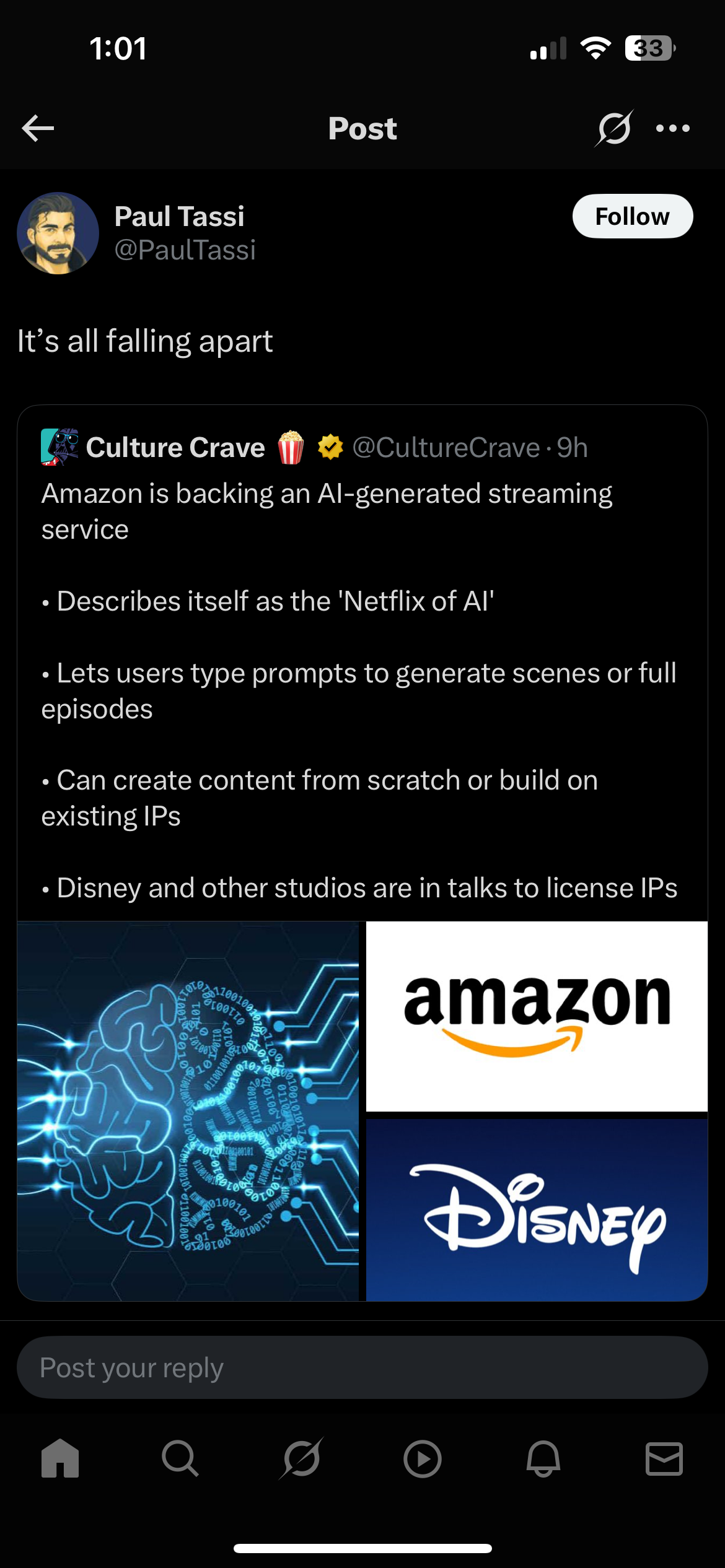 > Как раз недавно Netflix рассказали (https://www.theguardian.com/media/2025/jul/18/netflix-uses-generative-ai-in-show-for-first-time-el-eternauta ), что впервые воспользовались AI-футажом в одном из своих сериалов. И как одну из причин называют цену — в сравнении с несколькими днями работы студии по спец-эффектам это пустяки, так ещё и выходит быстрее. Польза => Деньги => Улучшение качества => Польза => Деньги => и т.д.