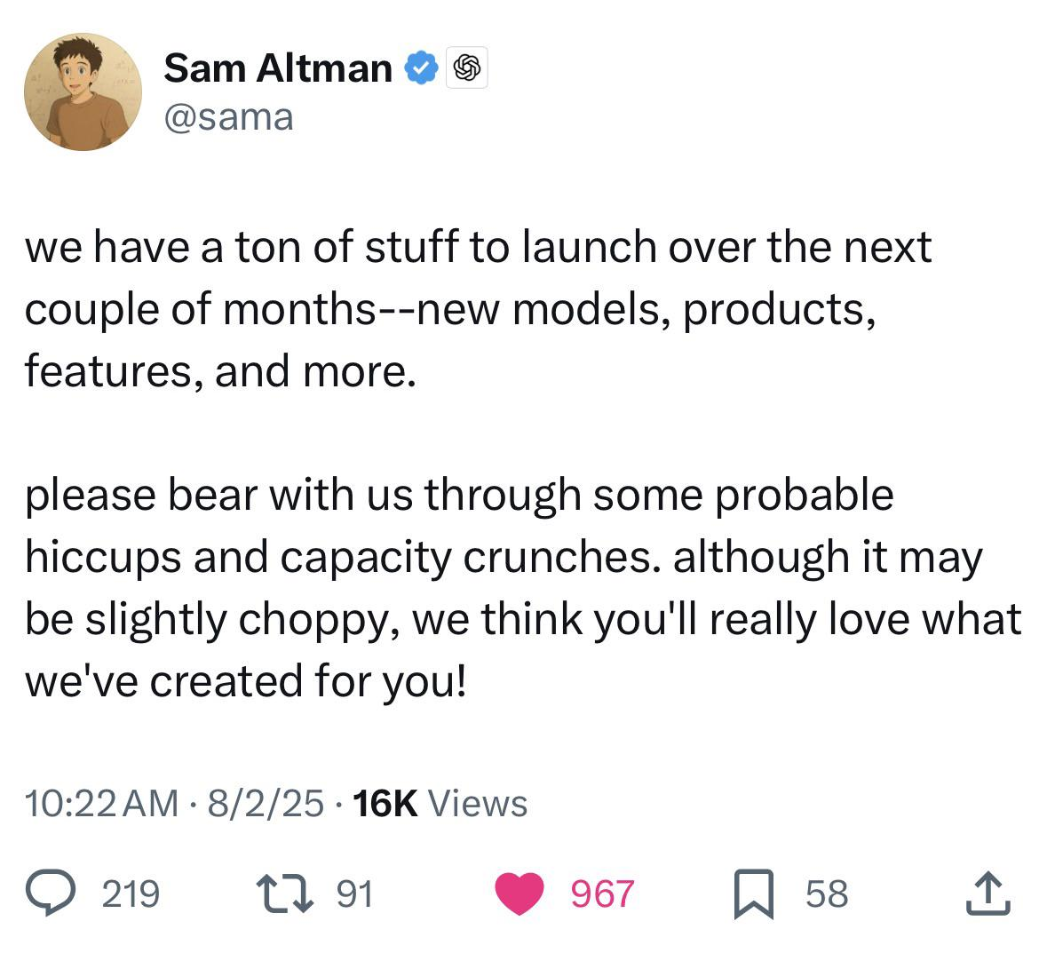 Продолжают появляться намеки на скорый выход. ОпенАИ обычно делают большие релизы по четвергам. Вряд ли завтра. Скорее на будущей неделе.