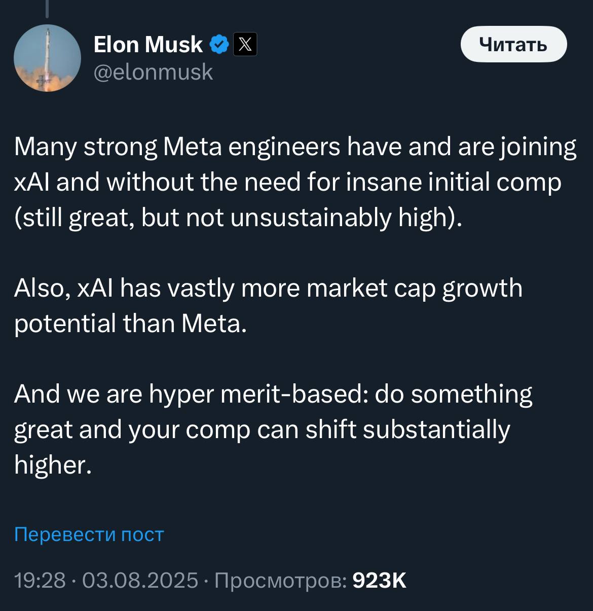3. Топ-1 с отрывом на очень свежем бенчмарке на длинный контекст (документы на ~100k токенов) от AA, 76% против 68% Grok 4, 66% Gemini / Claude. Бенчмарку буквально 5 дней (ссылка (https://x.com/ArtificialAnlys/status/1953523986526351576))