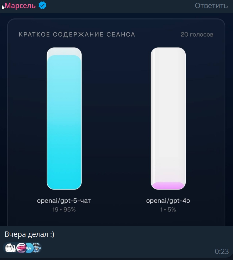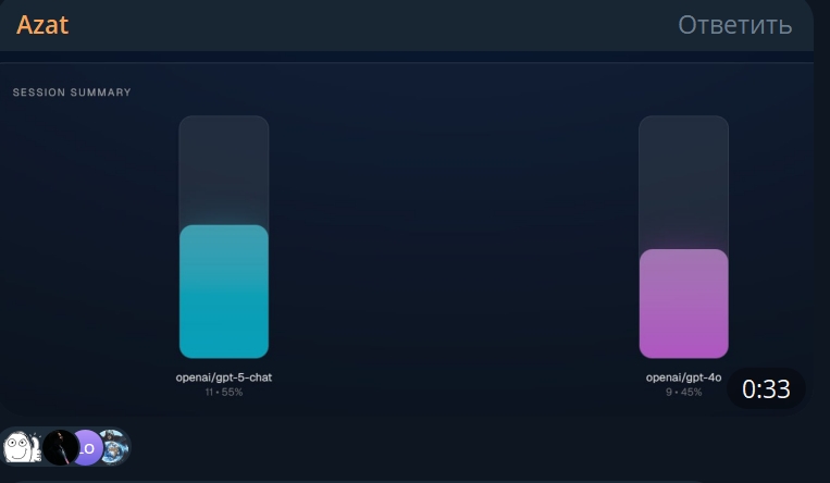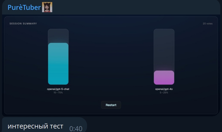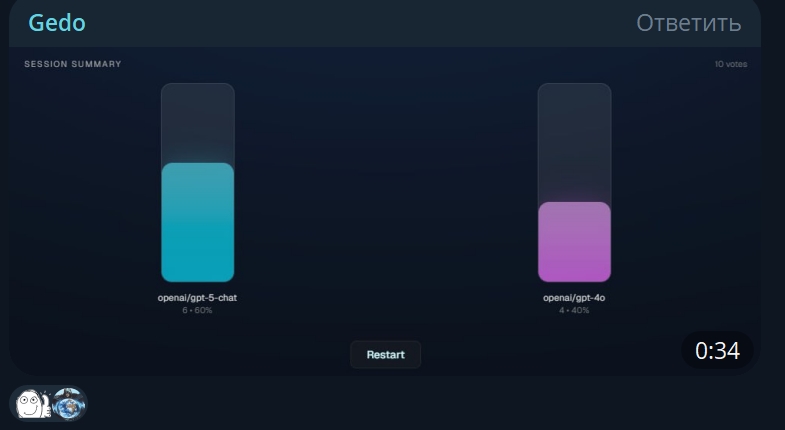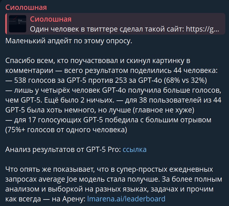 Для нейрошизов критикующих GPT-5, один человек в твиттере сделал такой сайт: https://gptblindvoting.vercel.app/