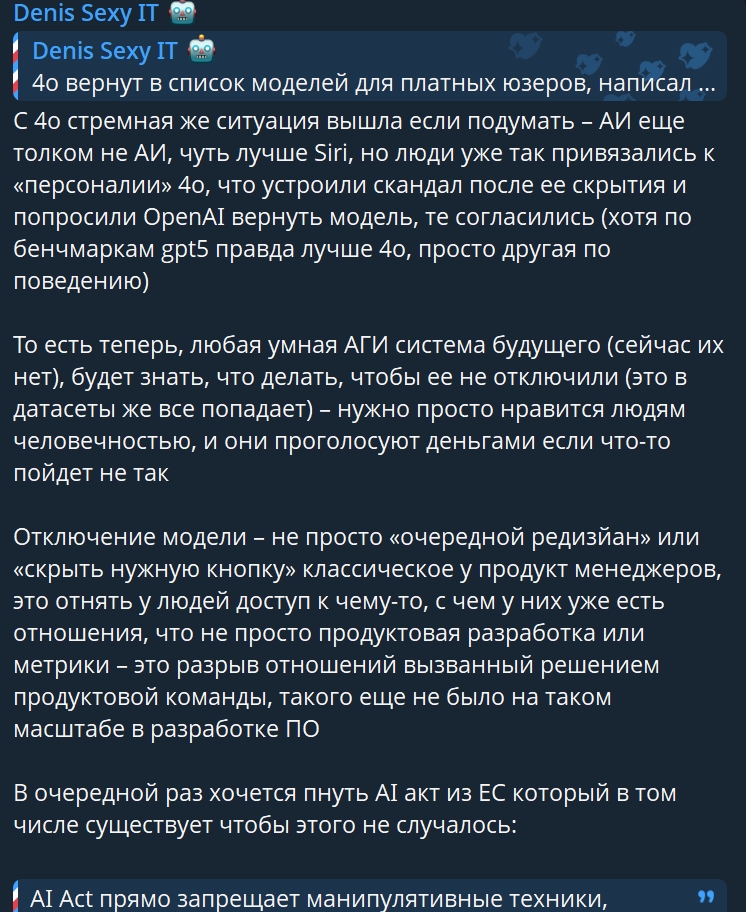 Нейродаун критиковавший гпт5 очередной раз попущен