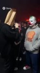 Два официанта начинают его бить, но это выглядит комично, как в комедиях.