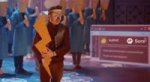 После чего он берет трость с подноса. Говорит «спасибо» и идёт на выход из ресторана. Остальные интеллегенты сидят за столом