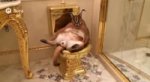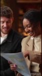 В зале заходят 4 официанта с подносами поменьше, по одному у каждого. Ставят подносы на стол, открывают крышки. На каждом из подносов по одной трости.