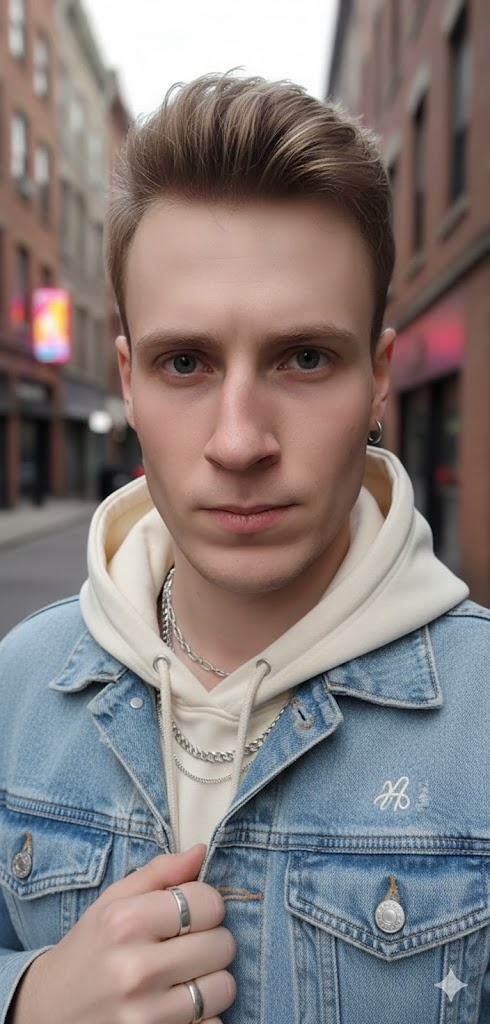 Серебро, худи, джинсовка, кольцо в ухо, контактные линзы. Как мало нужно для лукмакса.