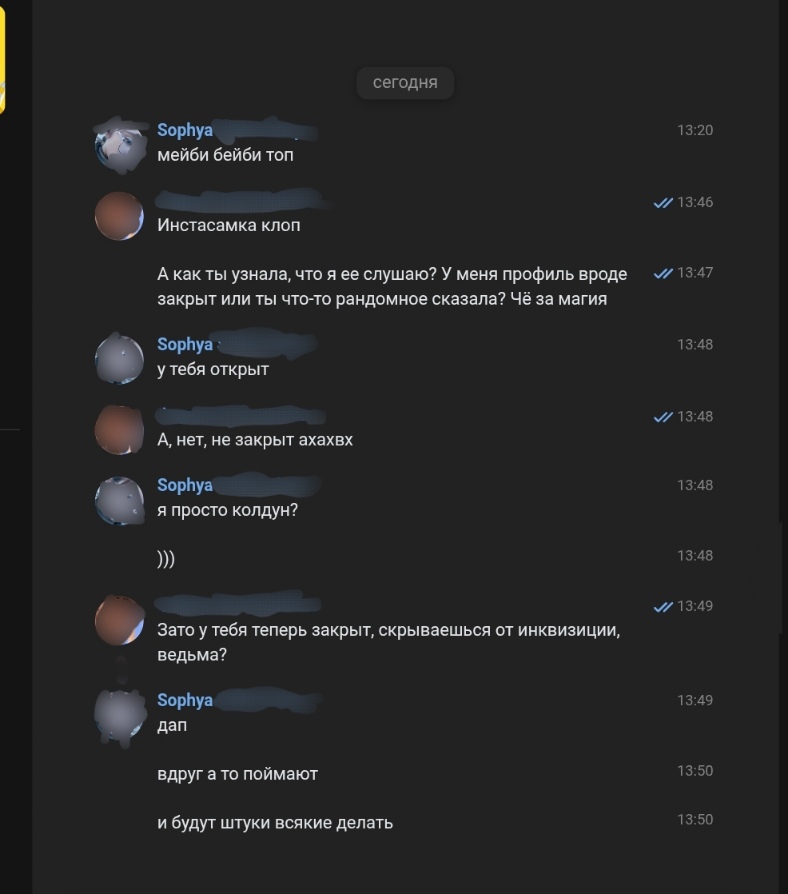 Потом вдруг вижу, что она мне написала. Состоялся диалог пикрил 2