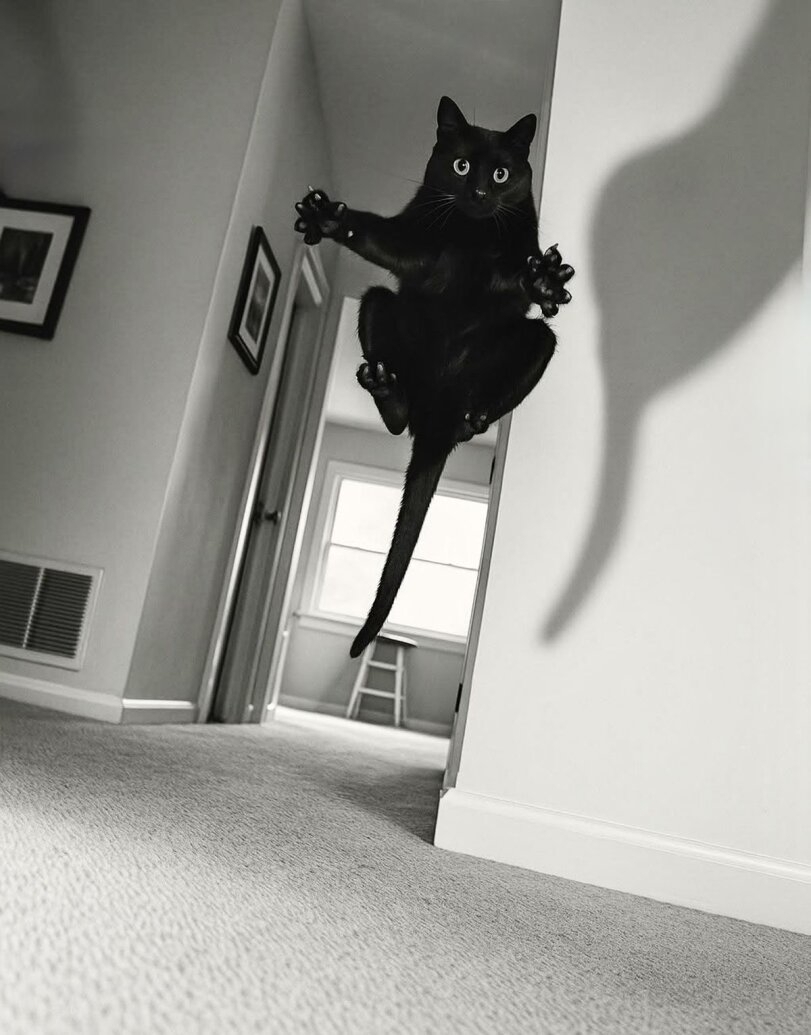 В зависимости от результата через полторы секунды кошка начинала отчаянно щемиться либо влево, либо вправо, затем обычно въёбывалась жбаном в стену, отскочив сломя голову, хуярила в противоположную сторону, въёбывалась в дверь и окончательно охуев от такого обилия бросающихся на нее препятствий начинала щемиться вверх по шторам.