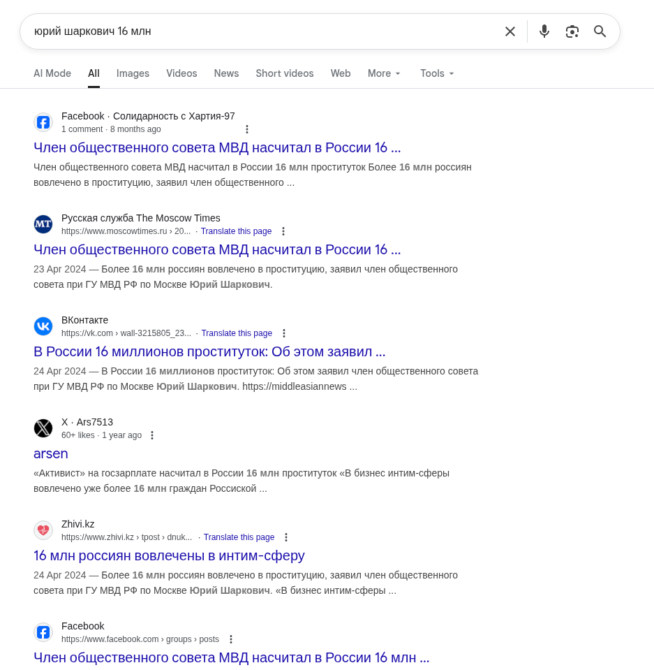 Когда я узнал, что в России полтора миллиона проституток, то я просто охуел. Вы только вдумайтесь: С