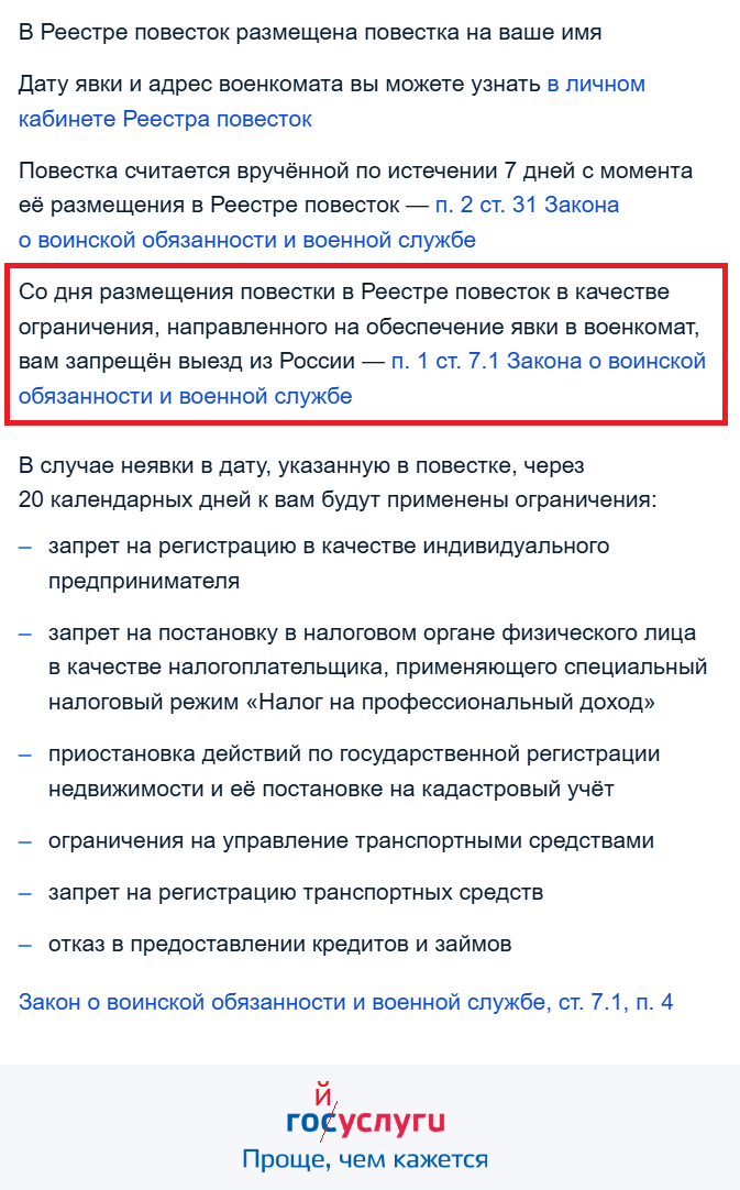 >россиянин невыездной сразу после направления повестки