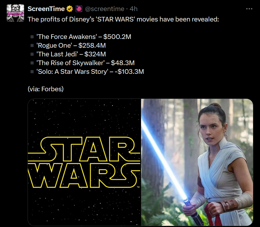 Вот и ответ, почему фильмов больше не было и почему не торопились снимать новое кино про Рей.