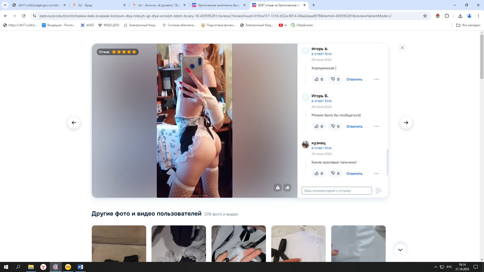 >>325772436 зайди на озон : 1)выбери "товары для взрослых" > "Эротическое бельё и костюмы" 2)ищешь женскую одежду с нормальным количеством отзывов 3)находишь в отзывах фото женщин в этой одежде 4)угараешь с комментариев оленят под отзывом