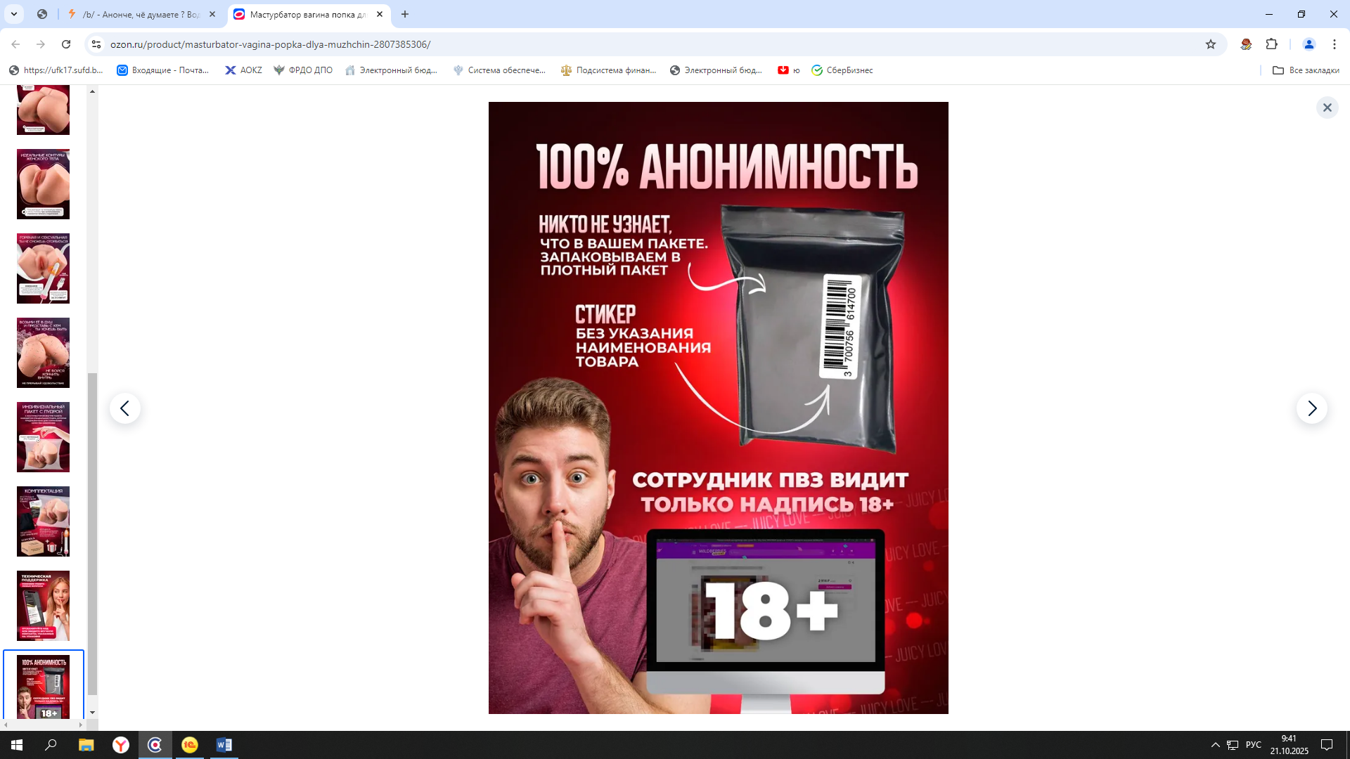 >>325773488 Видели точно, но вроде уже +18 заблюрено стоит и иногда паспорт просят показать в ПВЗ. почти тридцатка, покупал дилдак, смазон и поперс, паспорт попросили, говорю вы ебанулись, я же дед блеать, в итоге поржали и выдали, ахаха