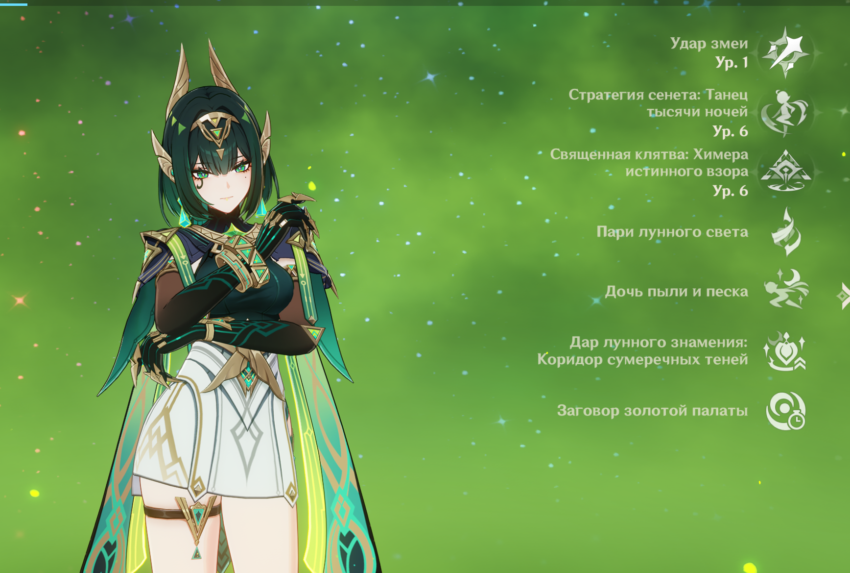 Элементальный навык — основной источник дамага в состоянии Танца теней, в котором девушка совершает усиленные заряженные удары. Скейлы на них прописаны в скилле, из-за чего его качать следует в первую очередь.