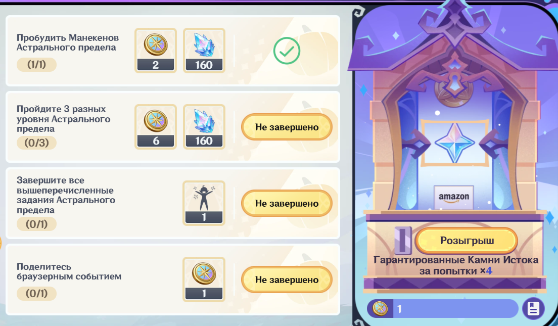 ✦ Промокоды https://genshin-impact.fandom.com/wiki/Promotional_Codes