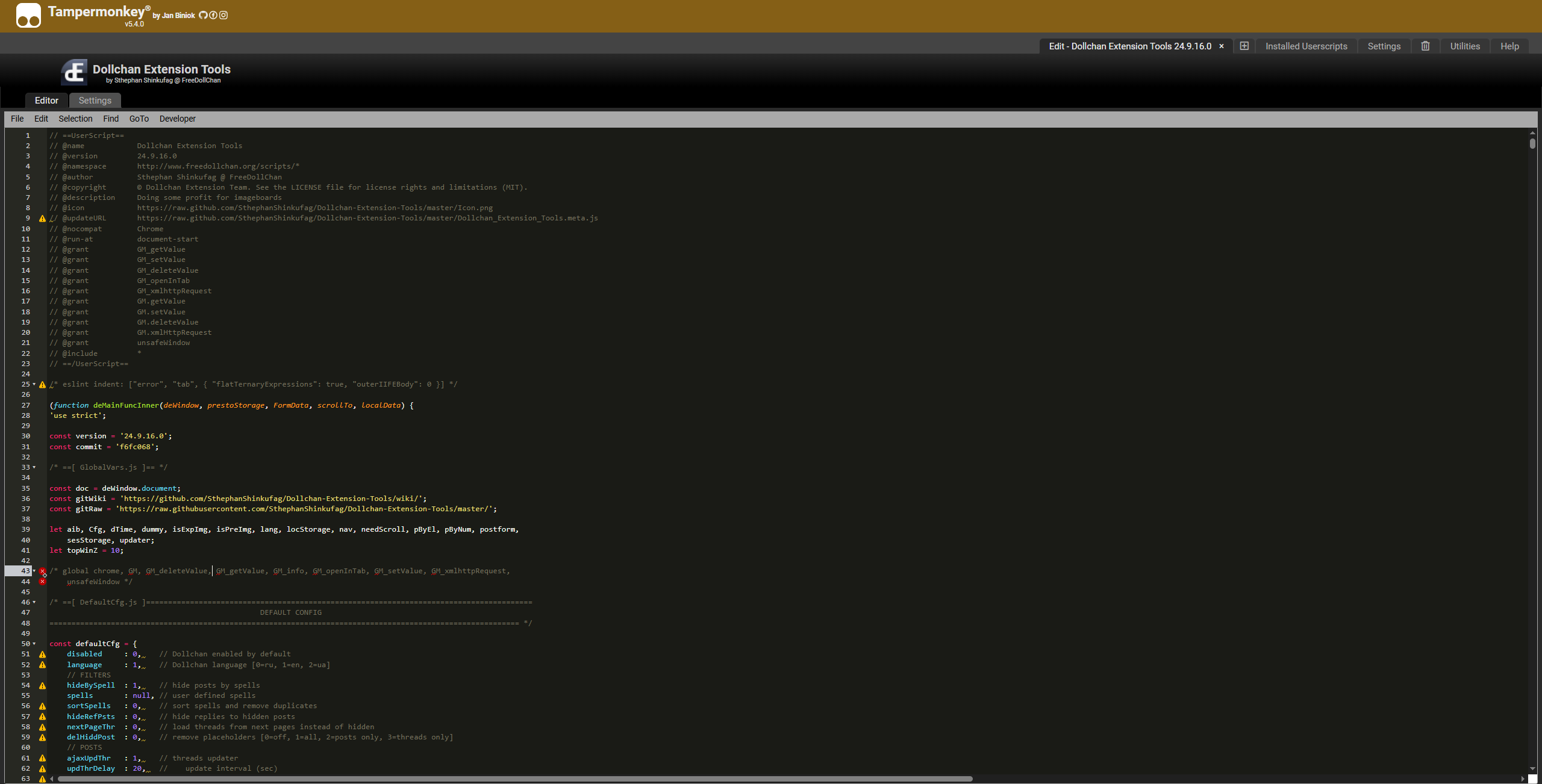 Алсо в коде дохуя строк помечено предупреждением.