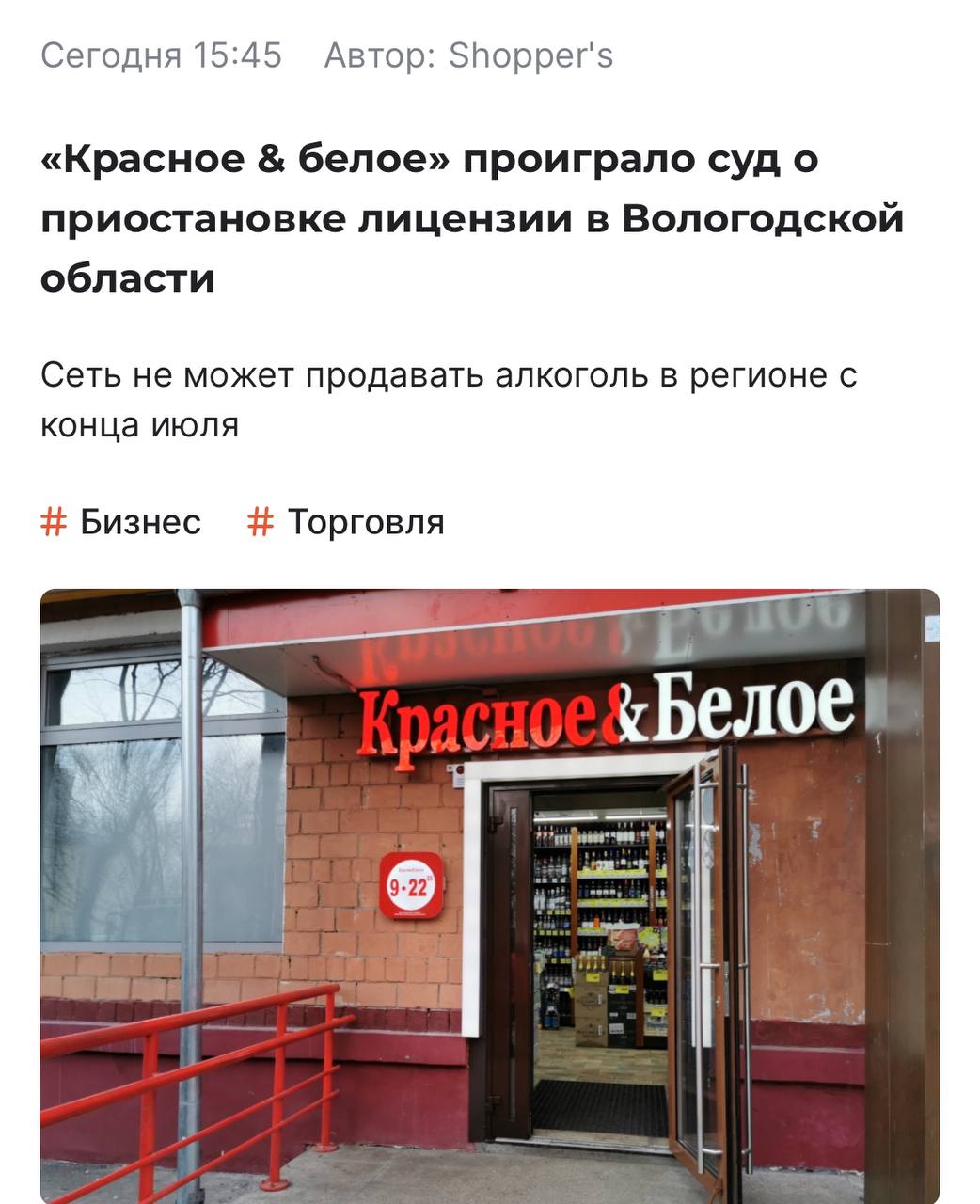 «Красное и Белое» закрылось в Вологодской области. Компания проиграла суд и теперь официально не мож