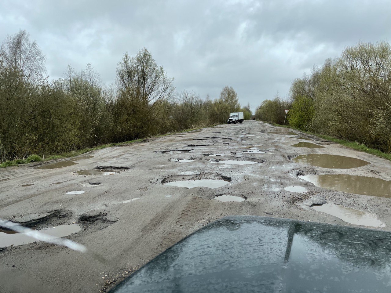 Ты че бредишь? Мне сейчас туда поехать что ли чтоб тебе фотку сделать? Ну вот пример реальной дороги под Угличем по которой я ехал. Эта дорога как раз все равно проходима но смысл передает даже лучше