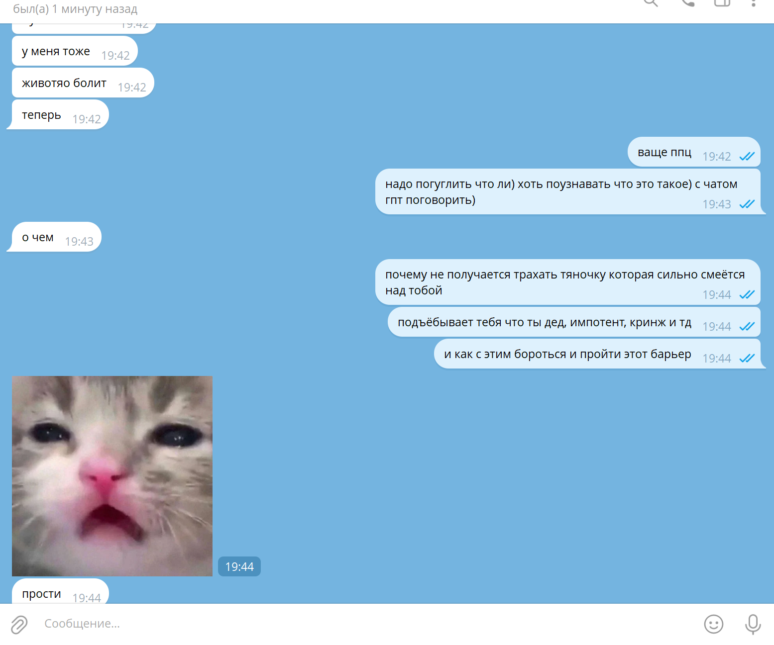 >"не пиши мне эту херню, я не унитаз для негатива"