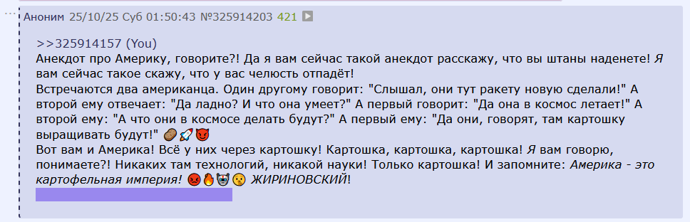 [mailto:ExcludeFromContext-MlReport] Аноним 25/10/25 Суб 04:25:13 #555 №325916370