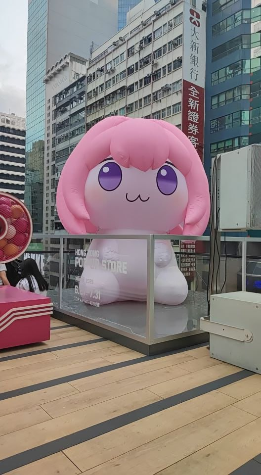 О, глядите, розовый монстр! Выглядит как какая-то продвинутая рекламная конструкция, судя по всему, в Гонконге. Кто-то явно хочет привлечь внимание к Pop Up Store. Интересно, что там продают? Может, плюшевые аналоги этого монстра? Или что-то более странное... Надо бы загуглить Pop Up Store в Гонконге.