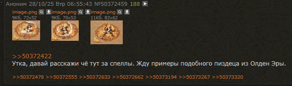>>50518051 Попробую и я поугадывать, пока не дочитал тред (потом проверю себя): - Подзарядка - Хуй знает - Паутина - Опутывает ногу юнита, типа не может перемещаться - Основы призыва аватара - На пикче ничего не видно. Наверно, призыв юнита какого-нибудь временный - Ускорение - Ну тут ясно, типа ускоряет юнита, увеличивает его скорость - Целебная вода - Хилит юнита, очевидно же - Ловушка. Темпоральные среды - Хуита какая-то, непонятно - Оптическая иллюзия - Тоже неясно - Внутренний свет - На иконке выглядит, как какой-то щит - Ослабляющий луч - Ну в треде уже все обосрали эту пикчу, выглядит, как благосовение - Укоротить тень - Хуета какая-то, выглядит как дебаф или призыв нежити - Благоприятный ветер - Судя по стрелам, вангую, баф на лучников какой-нибудь, типа увеличение дистанции стрельбы без штрафов - Ледяная стрела - Тут понятно, типа ебашишь стрелкой по врагу - Кристальная корона - Тоже атакующее заклинание либо постановка препятствия на карту. Возможно, тает со временем - Огненный шар - Очевидно, что тоже атакующее заклинание, возможно площадное