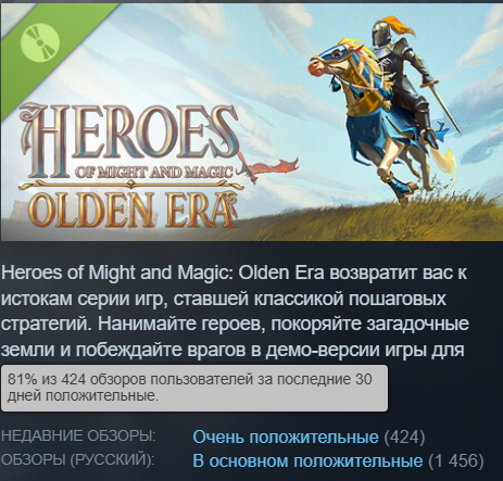 Я помню, как в детстве залипал в Heroes of Might and Magic III до утра — те карты, драконы, замки... Это была моя настольгия на всю жизнь. А тут вдруг выходит демо HoMM Olden Era, думаю, ладно, попробую, вдруг разочаруюсь. И вот сижу, а игра просто втягивает с первого хода! Графика свежая, но дух старой школы на месте, бои динамичные, герои прокачиваются так, что каждый выбор важен, а карта исследования — это чистый кайф, хочется исследовать каждый уголок.Честно, после нескольких часов в демке я понял: это моя новая любовь. Третья часть была легендой, но Olden Era её не копирует, а эволюционирует — добавили кучу фишек, баланс идеальный, и даже в демо чувствуется масштаб. Я в шоке, что это всего лишь пробник, а не полная версия! Если демка уже такая крутая, то релиз просто взорвёт мозг. Жду не дождусь, чтобы нырнуть в полную игру — это будет эпик!