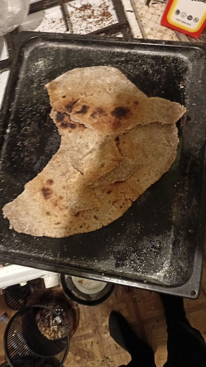 Приготовил лаваш почему получилось дерьмо? взял 2 яйца и овес перемолол в муку, далее намешал туда воды слепил комок положил на противень раскатал, убрал нагрел противень закинул, несколько минут жарил с каждой стороны, потом как начал подгорать выключил огонь и полил водичкой. Получилось пикрил, где ошибки?