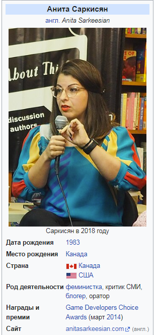 Кстати, вы знаете что Анита Саркисян выпустилась на этот свет в 1983? Она из вашего уродского поколения, которое довело игровую индустрию до кризиса!