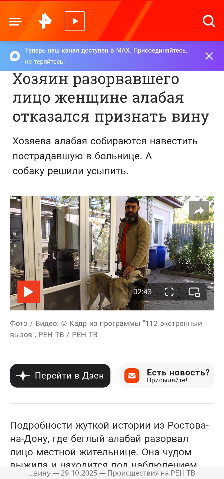 Как пишут СМИ, хозяина кровожадного пса зовут Роман. По его словам, псина по кличке Алтай сбегает без намордника не в первый раз, но впервые побег из дома закончился чьей-то кровью.
