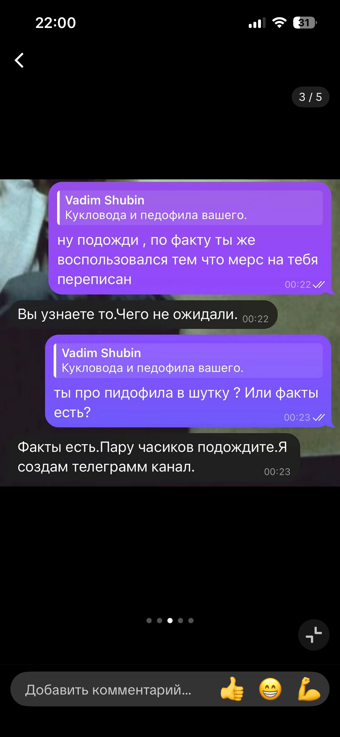 А я верю Инстасамке про историю со спотифай и педокси. Когда прочитала его старые статьи на жж про величие ашкеназов, высмеивание гоев и холокоста, поняла, что он больной ублюдок с комплексом бога, который хочет собрать возле себя что-то вроде секты. Для меня Мейби Бейби и Дора - подстилки патриархата, которые используют тему буллинга и играют в феминизм во благо своей популярности, пока сами терлись в баре 1703 в поисках питательного хуя галата и чмирона хуяновича.