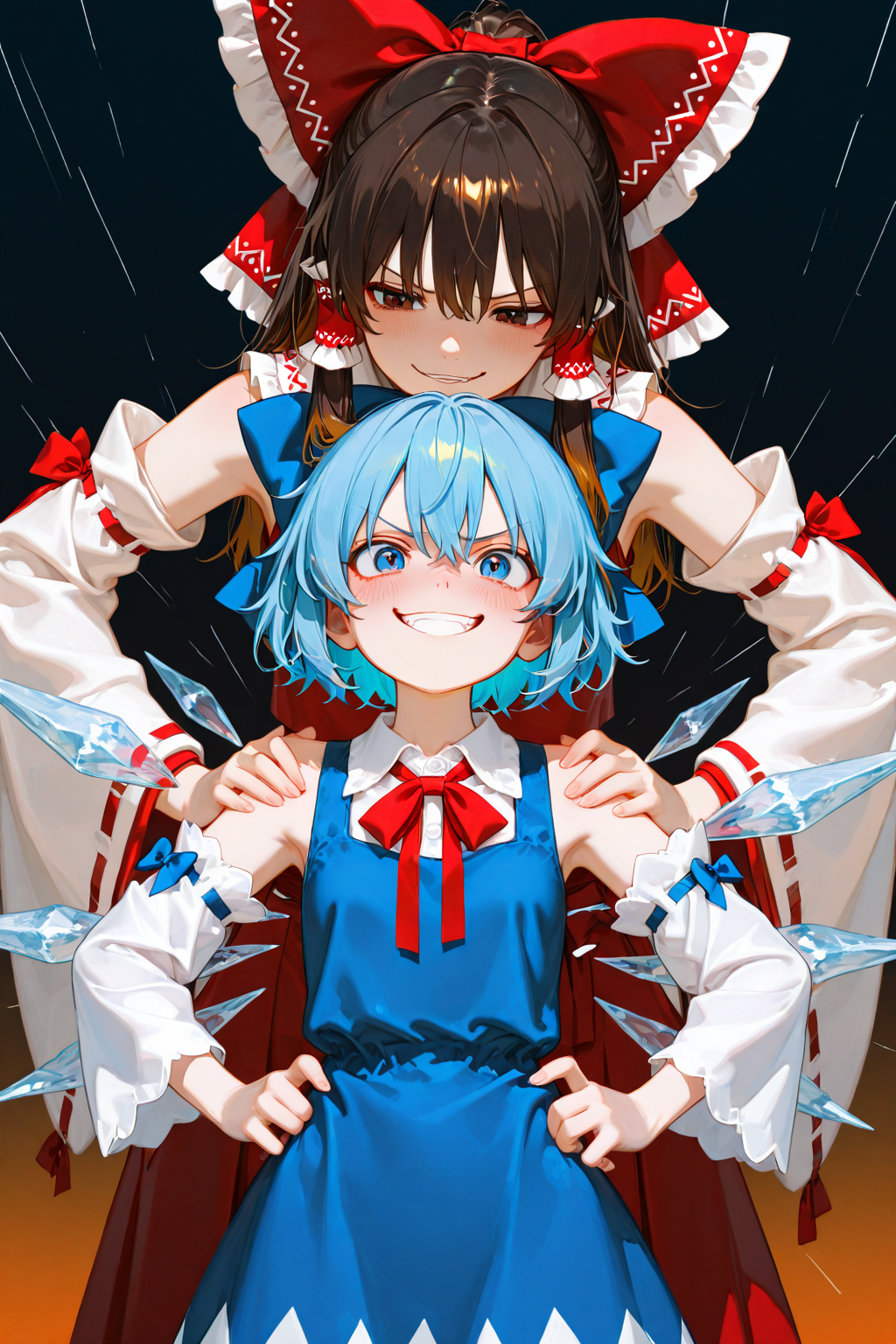 И второй реквест, если такое реально сгенерить кек, на счёт первого не сомневаюсь Две Мэй на кровати в позе 69 точнее валетом лежат на боку и вылизывают стопы/пальцы на ногах друг другу