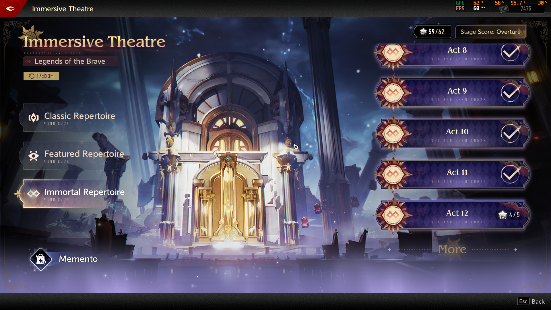 Ну всё, театр пройден по сути, дальше уже не падает ничего. Раза с 10 прошел 12 акт, хорошо есть возможность переиграть босс файт пока не умер. Главная проблема это ульта психички когда всё поле в шторме, саппорты тупо дохли.