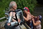 cloth dissapear instantly. black censor bars on nipples and the pubic area. someone put shampoo on her head. shampoo is striking from the toy on the left