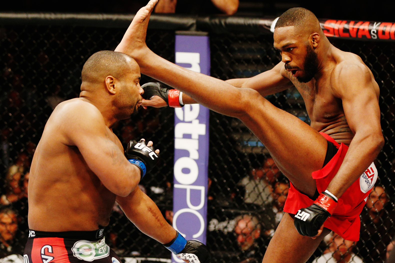 Stipe Miocic is a huge man at 6'4" (193 cm) officially weighing 230 pounds (104 kg). But still his leg reach at 39 inches (99 cm) is shorter than leg reach of well known Brazilian former Featherweight champion Jose Aldo Junior ( 5'7" height (170 cm) ) whose leg reach stands at 40 inches (101 cm).