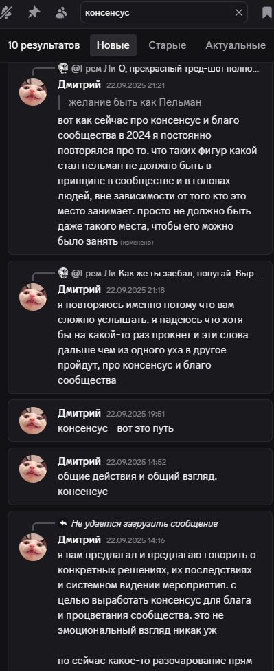 >>326606529 >таких фигур, какой стал пельман не должно быть в принципе в сообществе и в головах людей, вне зависимости от того кто это место занимает. просто не должно быть даже такого места, чтобы его можно было занять >проведя разговор между всеми сторонами существующего конфликта есть вариант его завершить и убрать из мероприятия этот элемент >консенсус >мне понять и вам понять. как правда будет лучше для мероприятия, прийти к консенсусу
