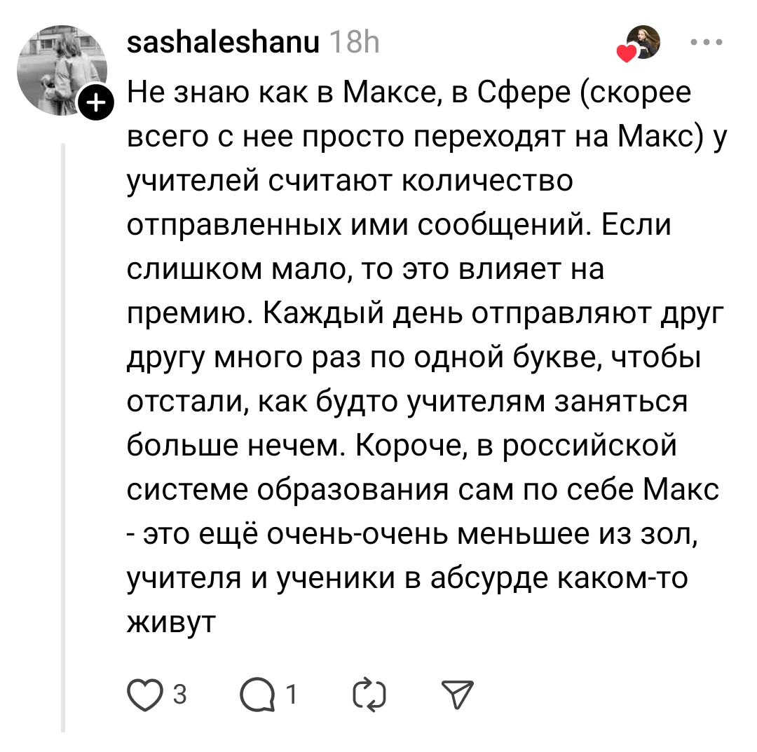 Работаю преподом в вузике. Естественно, никакой макс не ставил, если студенты спрашивают, то мы с ними кекаем с этого макса. Да и вообще всем видом показываю, что саботаж - лучшая стратегия взаимодействия с пынизмом. Я же должен воспитывать правильные ценности в подрастающем поколении. Даже если под угрозой увольнения будут лезть с ним, максимум поставлю его на старую мейзушку, которая не покажет носа из дома в итоге.