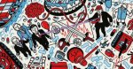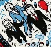 На обложке изображена борьба «синих» против «красных». Синие - это глобалисты, красные - это, видимо, остатки национальных правительств, государства, сохраняющие какую-то степень автономии, которые хотят чтобы все было как раньше, а не безукоризненного исполнения указивок из Дохи и Сити. По одежке мировых лидеров можно понять кто к какому лагерю принадлежит и в какую сторону гребет.