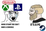Консоли сюда же кстати, только тут уже противовес - гейбкуб. Аналогии те же, принцип тот же. Тайлер уже запускает свою колду на своей плойке, нахуй ему эта непонятная поебень? Ну посмотрим, посмотрим.